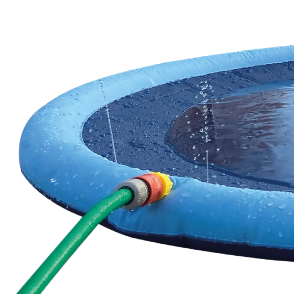 La instalación es simple: simplemente conecta la almohadilla del rociador a una manguera de jardín o tubo de PVC y ajusta la presión del agua para disminuir o aumentar la altura del rociador. adecuada para patio trasero, parques, jardines y otros lugares,